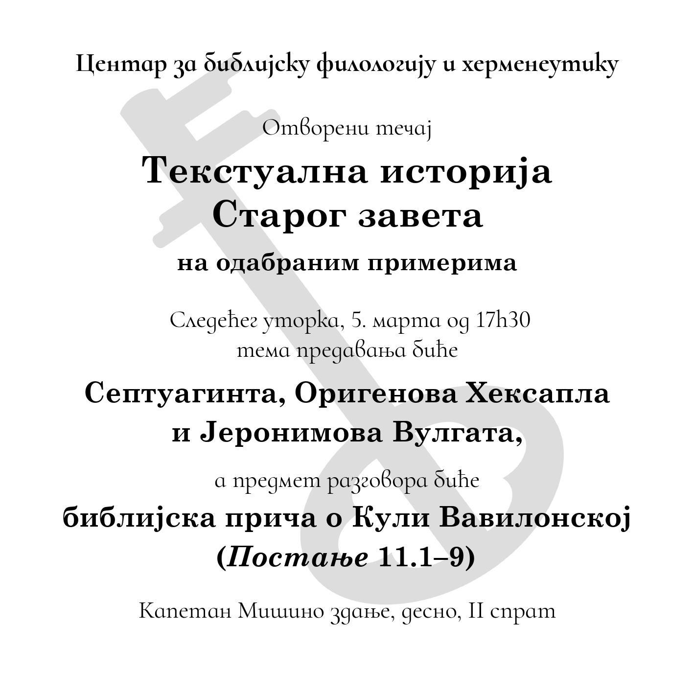 Центар за библијску филологију и херменеутику позива вас на наставак курса