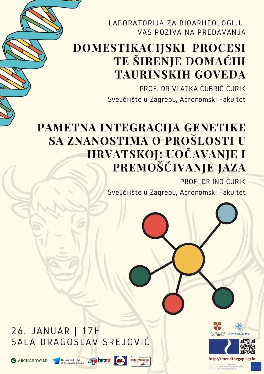 Лабораторија за биоархеологију вас позива на два предавања гостујућих професора из Свеучилишта у Загребу, која ће бити одржана у четвртак, 26.01. у 17.00 часова у Свечаној сали Филозофског факултета Драгослав Срејовић.