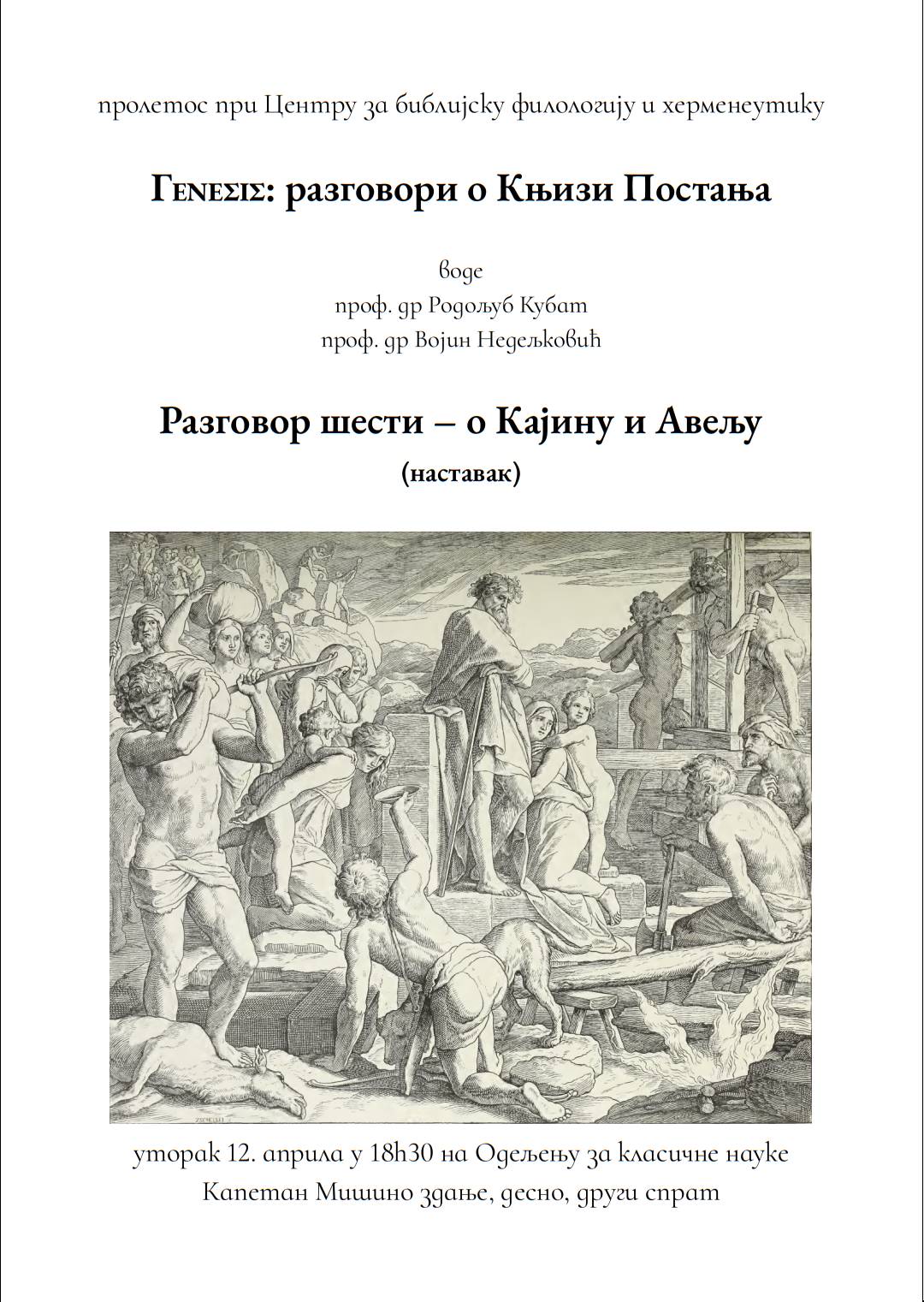 уторак 12. априла у 18h30 на Одељењу за класичне науке